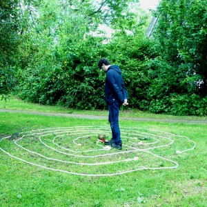 geomantische Auslegung und Begehung eines temporären Labyrinths aus Seilen für ein individuelles Thema – Der Weg zur Mitte – Weitere geomantische Labyrinthinfos.